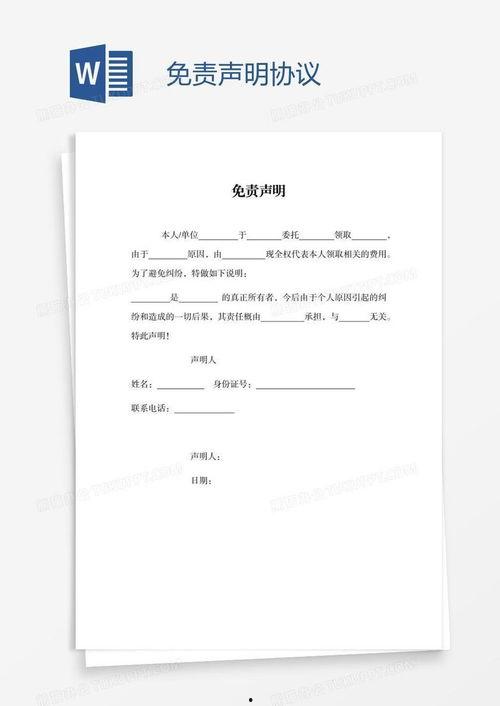 首先,你得明白,免责声明是一种法律文件,它通常出现在各种合同、广告、产品说明等地方。简单来说,免责声明就是告诉人们,在某些情况下,提供信息或服务的一方不承担法律责任。